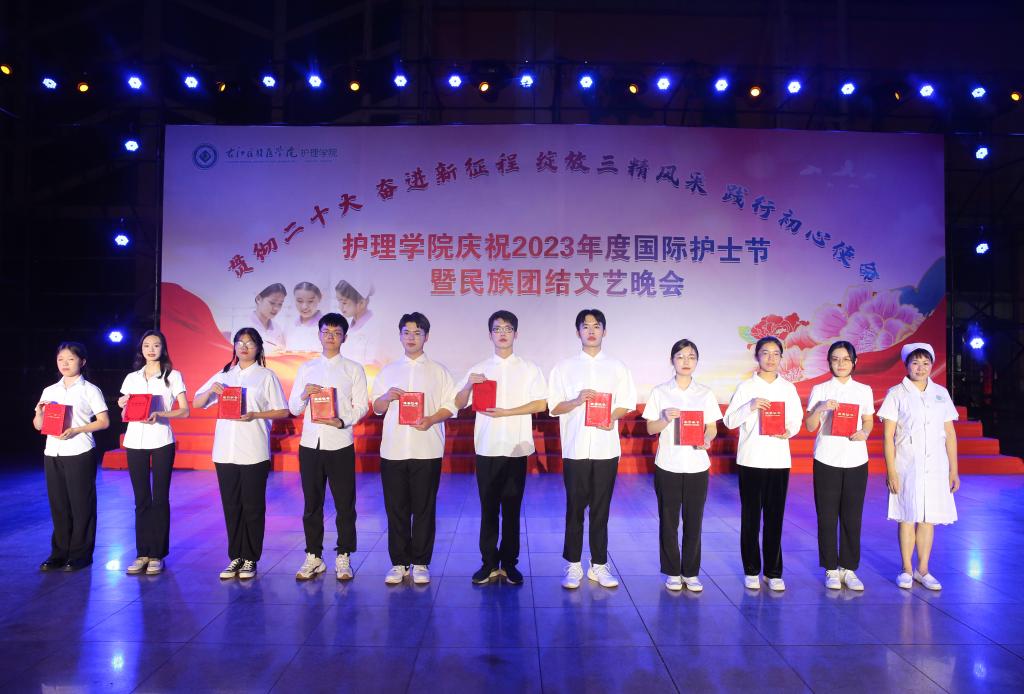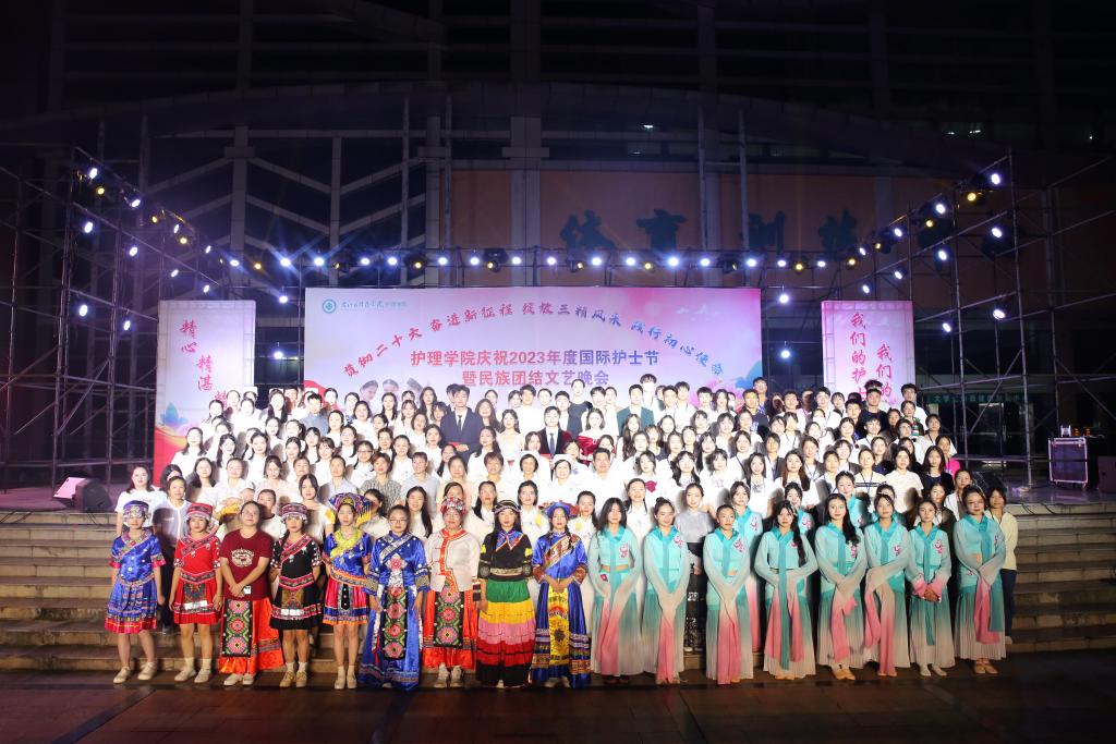 5月20日晚,Beat365官网护理学院举办“贯彻党的二十大精神,奋进新征程,绽放三精风采,践行初心使命”国际护士节暨民族团结文艺晚会。