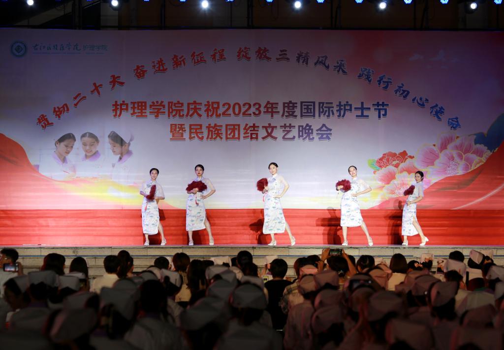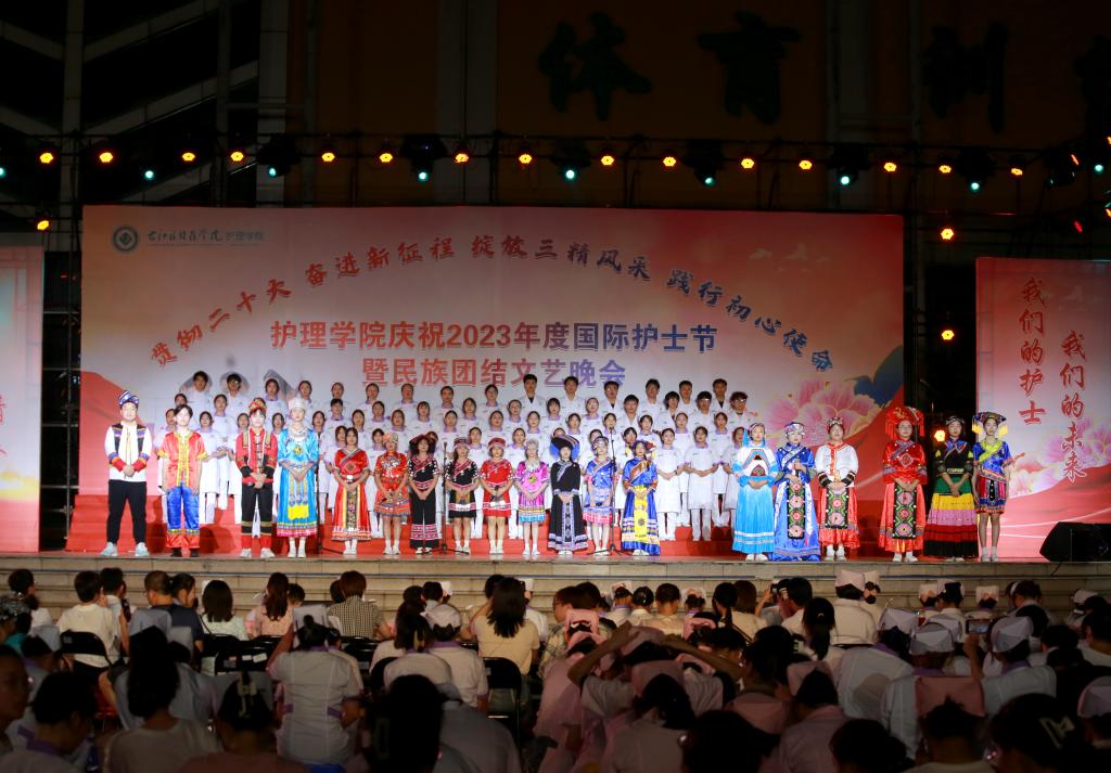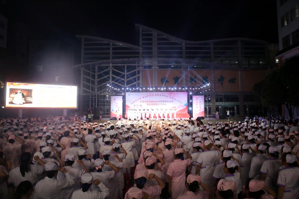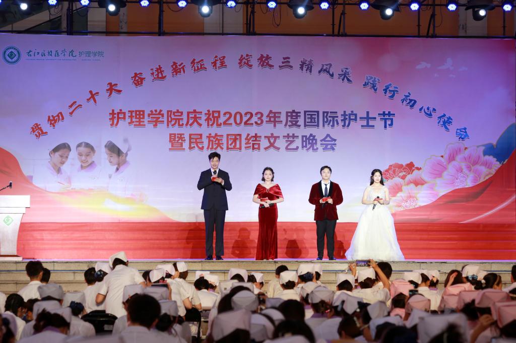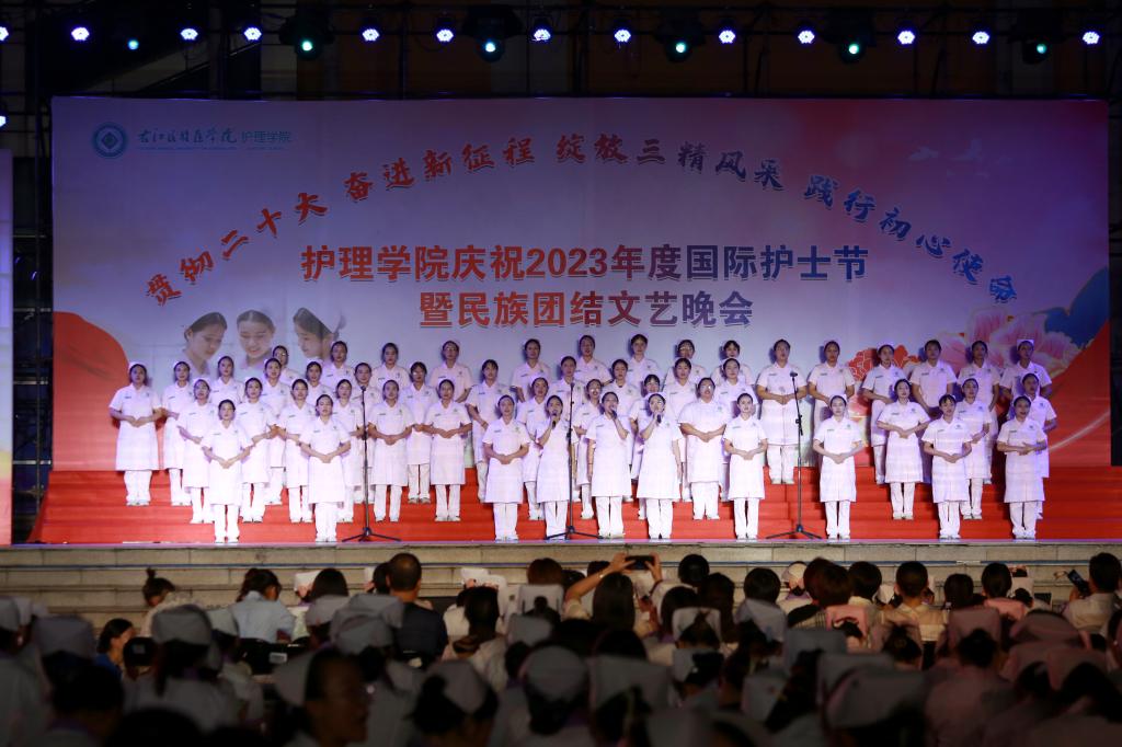 翩翩杏林挥汗影,袅袅白衣照柔情。5月20日晚上,由护理学院、护理学院共青团委员会、护理学院学生会共同主办的主题为“贯彻党的二十大精神,奋进新征程,绽放三精风采,践行初心使命”国际护士节暨民族团结文艺晚会在Beat365官网大医广场隆重上演。护理学院全体师生参加活动。