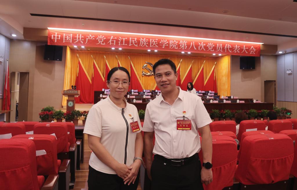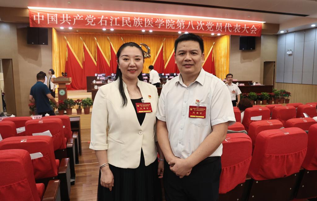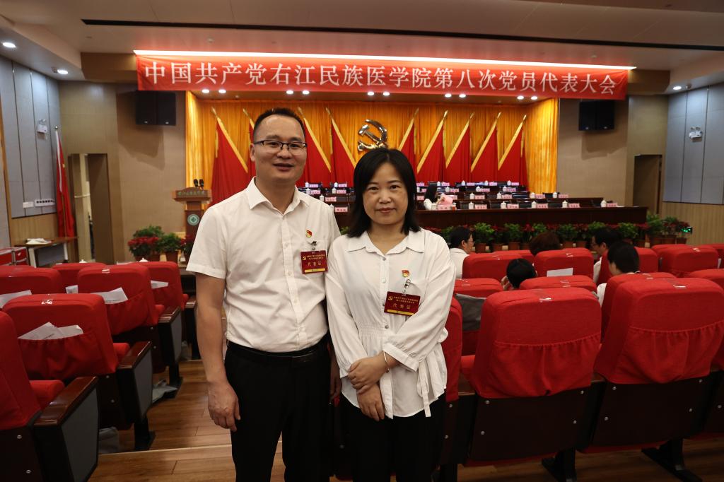 “这是我们夫妻第一次一起参加学校的党代会,觉得意义非凡。平时我们俩在家里就经常相互提醒,要把工作做好,要把能力提高。党代会期间我俩也都在谈论听完报告后的感受,相互交流。五年来,学校勇担历史使命,全面加强内涵建设,在教学、育人、引才、科研、管理、文化、对外交流等方面取得历史性突破,我觉得无比骄傲自豪。”尹毅霞代表告诉笔者,她和丈夫黄华东是右医临床医学专业的同班同学,同年同月同日加入中国共产党,1999年毕业后留校工作至今,是右医发展的见证者,也是参与者。