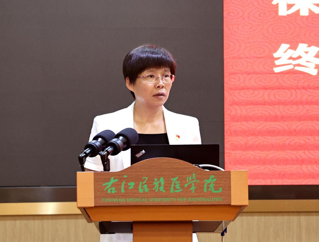 邓砚书记强调,面对学校“更大申博”,建设新时代区域性高水平医科大学的奋斗目标,各基层党组织及广大党员要学习先进典型,赓续榜样力量,凝聚学校高质量发展的磅礴力量,要立足岗位,对标先进,坚持党建与业务双融双促、同向发力,深化党旗飘在一线、堡垒筑在一线、党员冲在一线“三个一线”行动,真正在推动发展中发挥基层党组织的战斗堡垒作用和党员的先锋模范带头作用。要坚持党建引领,贯彻落实党代会精神,推动学校各项事业高质量发展,要进一步强化大局意识、责任意识,尽职尽责,不断提高抓落实的能力和水平,把党代会精神学习好宣传好落实好,切实把思想和行动统一到大会的决策部署上来,把贯彻党代会精神同本部门本单位实际工作结合起来,确保党代会的决策部署条条落地、事事见效,推动党代会精神在右医红土地上落地生根、开花结果。要强化责任担当,深学细研实干,推动主题教育见行见效,牢牢把握“学思想、强党性、重实践、建新功”的总要求,切实将“学思用结合、知信行合一”的学习成果,转化为坚定的政治立场、真挚的为民情怀、深邃的战略视野,扎实推进清廉学校建设,为建设新时代区域性高水平医科大学、推动学校高质量发展提供坚强政治保障、思想保障和行动保障。