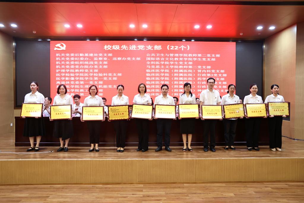 在大会上,校党委书记邓砚带领与会新党员、老党员高举右拳,面向党旗,庄严宣誓,重温入党誓词。一句句铿锵有力的誓言表达了共产党员不忘初心、牢记使命,为中国共产党奋斗终生的夙愿,宣示学校新一届领导班子坚定政治信念,坚持党的领导,奋力推进学校“更大申博”,建设新时代区域性高水平医科大学的信心与决心。