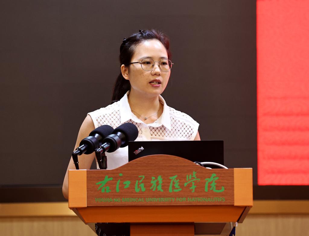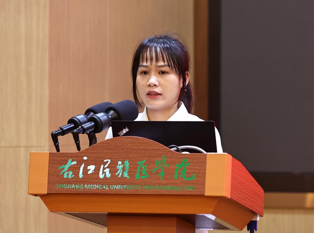 优秀共产党员、公共卫生与管理学院2019级预防1班滕美球在大会上作交流发言。
