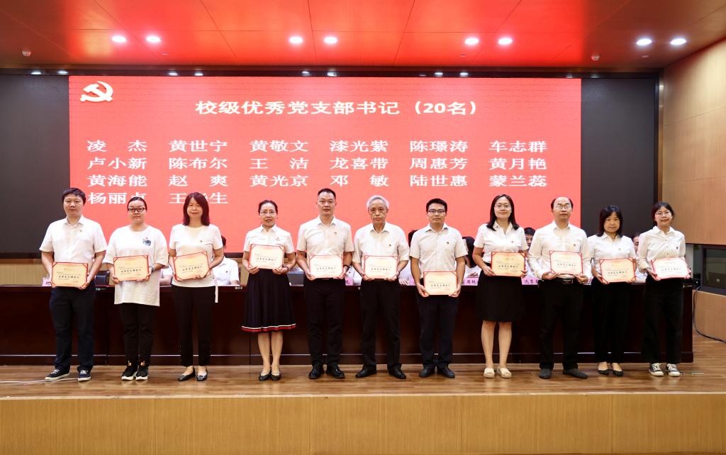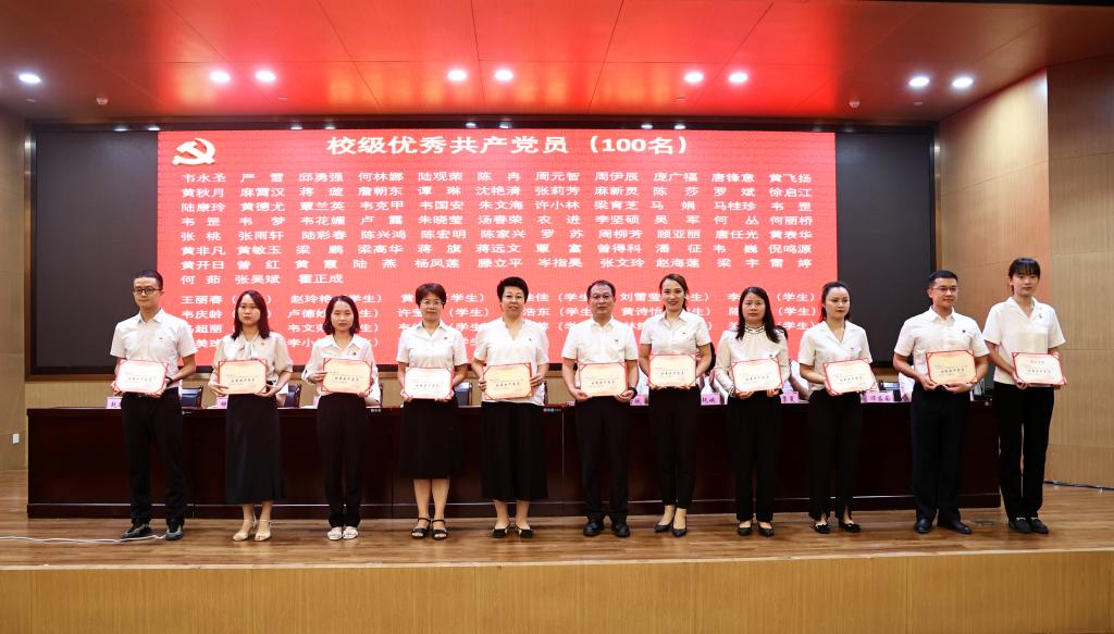 校党委副书记、校长李雪斌宣读了关于表彰先进二级党组织、先进党支部、优秀共产党员、优秀党务工作者和优秀党支部书记的决定。22个先进二级党组织、先进党支部,100名优秀共产党员、25名优秀党务工作者、20名优秀党支部书记受到表彰。与会校领导为获奖集体和个人颁发了证书和奖牌,邓砚书记、李雪斌校长向李玉贤、梁爱秋两位老党员颁发“光荣在党50年”纪念章,并向她们表示祝贺,会场响起阵阵热烈的掌声。