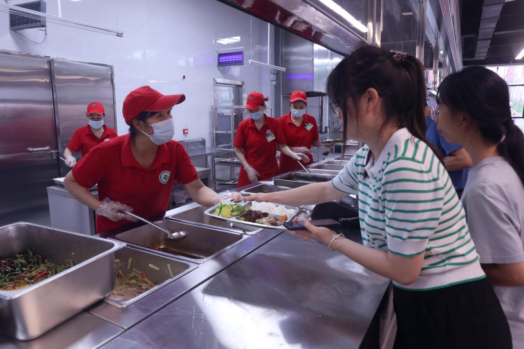 老师同学们在食堂“试吃”。