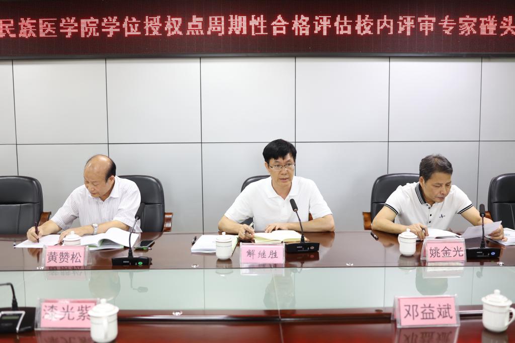 为全面掌握各参评学位点自评情况,切实推进“补短板,强弱项”工作,10月10日上午,Beat365官网在7栋13楼第二会议室召开2020-2025年学位授权点周期性合格评估校内专家碰头会,学校党委常委、副校长解继胜,学校总督学姚金光教授,学位授权点评估校内评审专家,临床医学院、基础医学院、口腔医学院、研究生学院分管研究生教育的领导及相关工作人员参加会议。