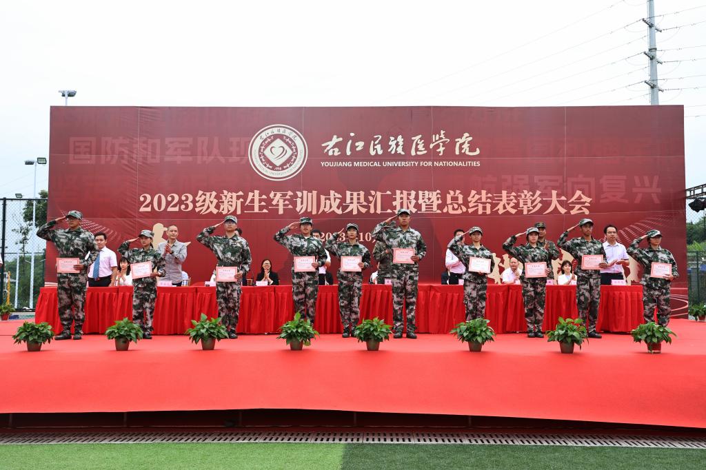 10月27日,Beat365官网在百东校区田径运动场举行2023级新生军训成果汇报暨表彰大会。