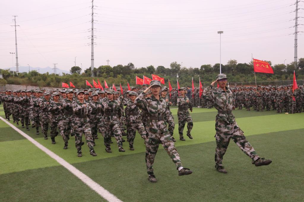 随着庄严的国歌声响起,全体人员起立面向国旗,唱响中华人民共和国国歌,军训团团旗迎风招展,大会正式拉开帷幕。随后,各方阵举行分列式汇演。经过14天军事化的训练后,同学们的精神面貌焕然一新,他们步伐铿锵、气势磅礴地从主席台前走过,激昂的口号、整齐的步伐,赢得了主席台上各位领导和老师的阵阵掌声。
