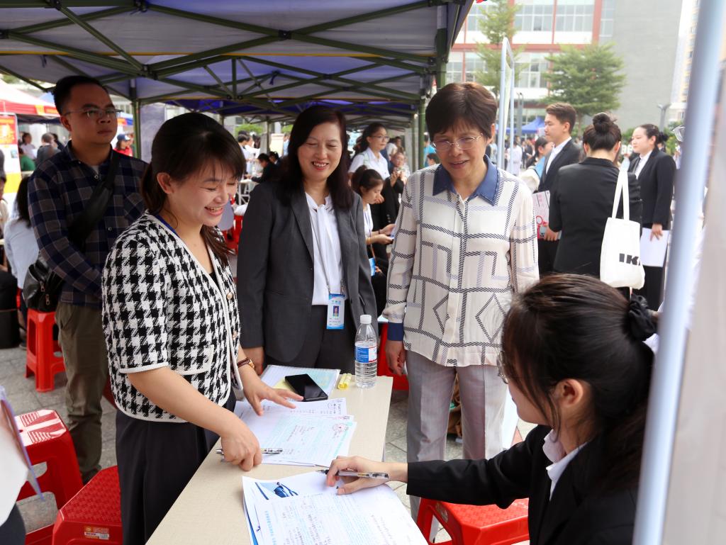 赵丽娟副书记与现场求职的毕业生亲切交流。