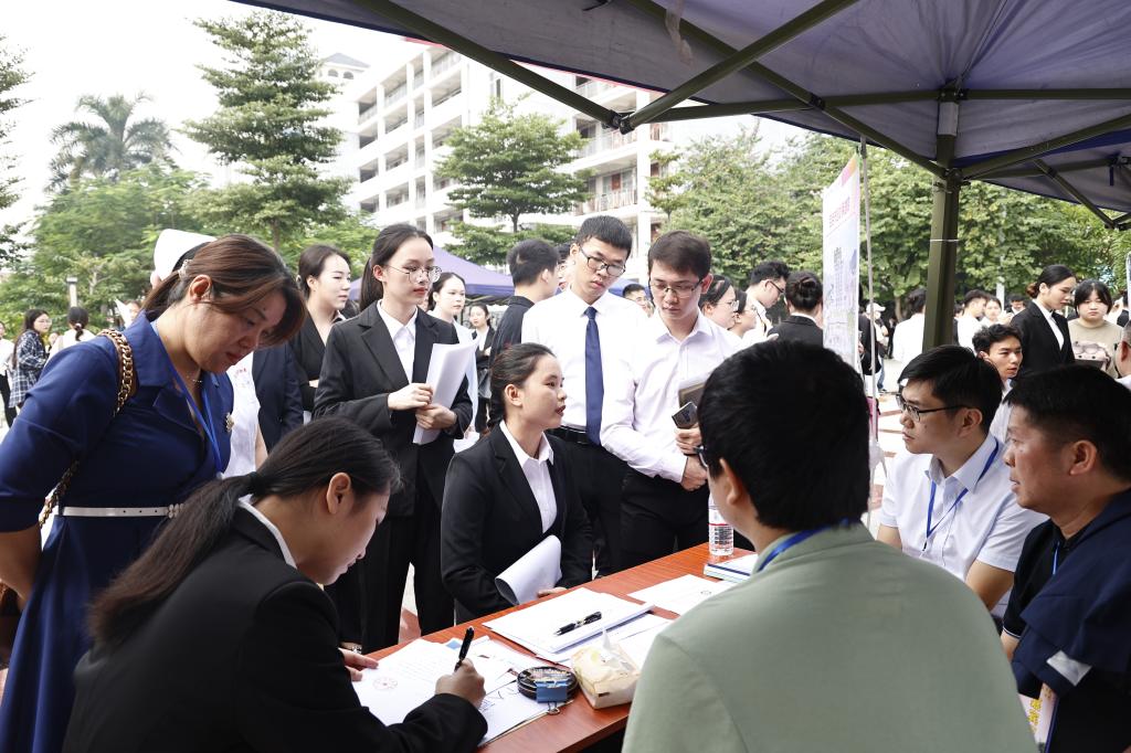 双选会现场氛围热烈,毕业生们结合自身求职目标,积极与用人单位深入交流,勇往“职”前,向心仪的单位投递简历。据了解,本次双选会吸引330家优质用人单位参会,提供了10366个就业岗位。