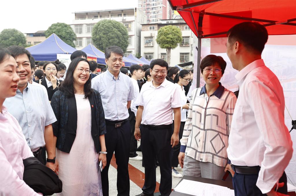 学校党委副书记赵丽娟,党委常委、副校长周艳娥,党委常委、副校长黄龙坚,党委常委、纪委书记冼季夏,党委常委、副校长解继胜,党委常委、副校长谭盛葵,党委常委、副校长王俊利到现场与用人单位交流,了解用人单位的类型、岗位需求和目前的招聘情况等,感谢用人单位对学校的关心支持和对学校毕业生的认可,并听取用人单位对学校专业发展、课程设置、人才需求等方面的意见建议,关注正在参加双选会的毕业生求职进展,与毕业生亲切交流,鼓励他们积极求职,预祝他们找到心仪的岗位。