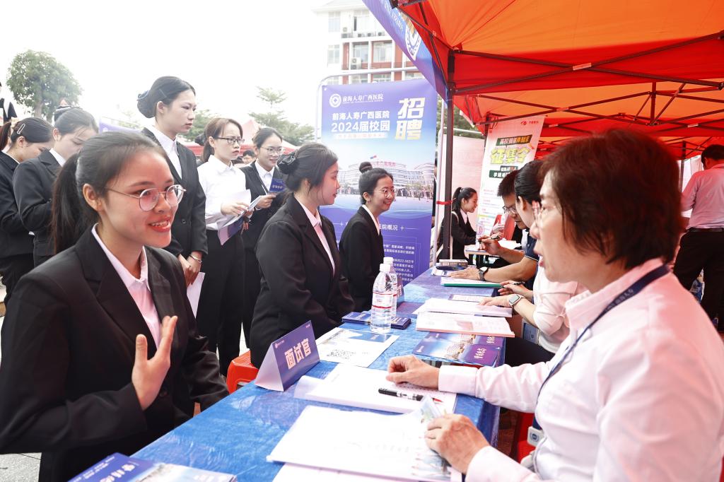 山西振东制药股份有限公司招聘负责人郭旭表示:右医学生勤奋、踏实,工作能力很强,在广西是很有名气的学校,所以这次希望能招到性格开朗、善于沟通的药学和健康管理专业的毕业生。