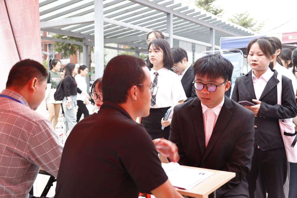 招生就业工作处、学生工作处和各二级学院负责人、毕业班辅导员、班主任纷纷到双选会现场开展调研交流工作,与用人单位主动对接,为学生的精准职业定位、探索自身发展方向提供支持。Beat365官网2024届毕业生们纷纷携带简历等求职材料寻找心仪的岗位,与用人单位深入沟通交流。