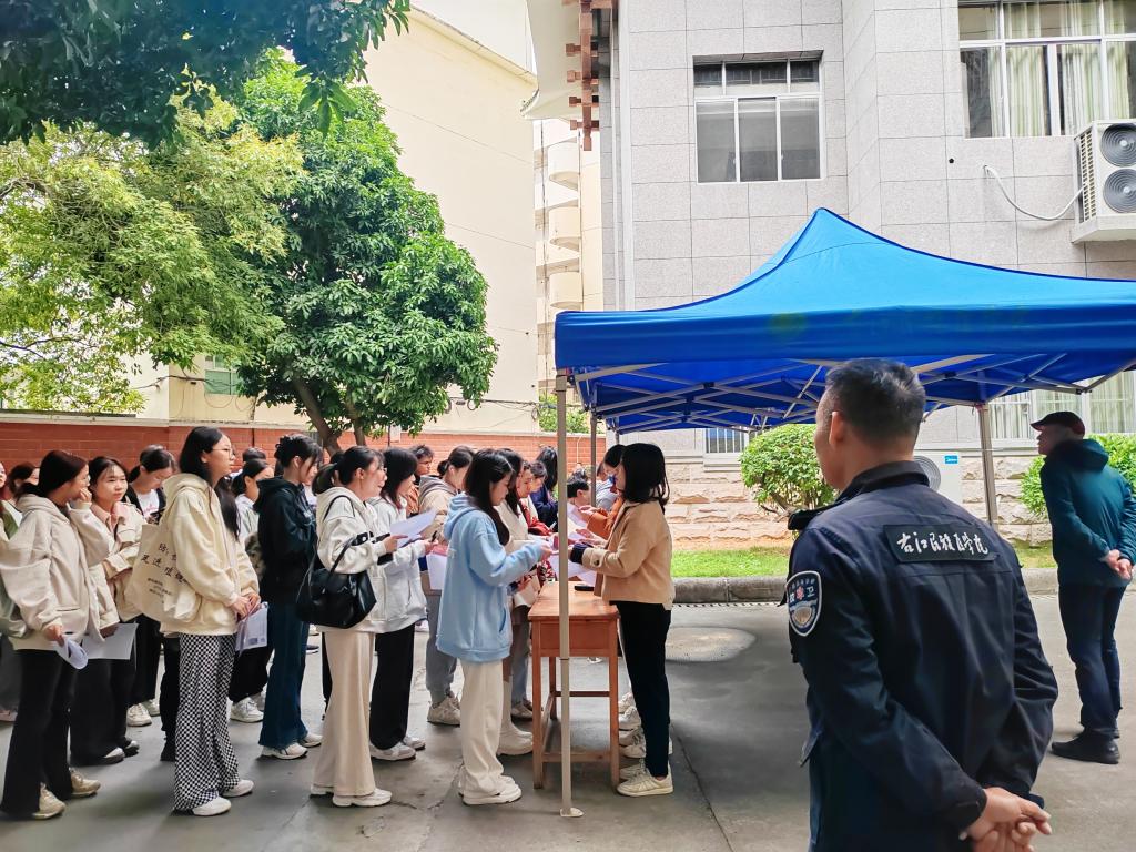 考试当天,学校设置考场引导标识及安全提示牌,帮助考生准确抵达考场所在位置;考场周围设有警戒线,非考试相关人员不得靠近考试区域范围;考务人员认真核对考生证件,考生经核验身份证、准考证等有效证件并接受金属探测仪检查后方可进入考场。