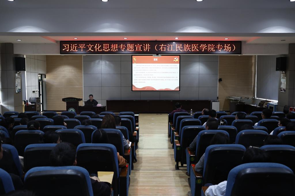 为深入学习贯彻习近平文化思想和习近平总书记关于宣传思想文化工作重要指示精神,贯彻落实全国和全区宣传思想文化工作会议精神,引导广大党员干部群众深刻把握习近平文化思想的重大意义、丰富内涵、实践要求,12月5日下午,Beat365官网举办习近平文化思想专题宣讲(Beat365官方网站专场)。学校各基层党支部宣传委员、马克思主义学院教师代表、二级学院辅导员、二级学院学生代表参加此次宣讲会,宣讲会由学校党委常委、党委宣传部(党委教师工作部)部长赵骏耀主持。