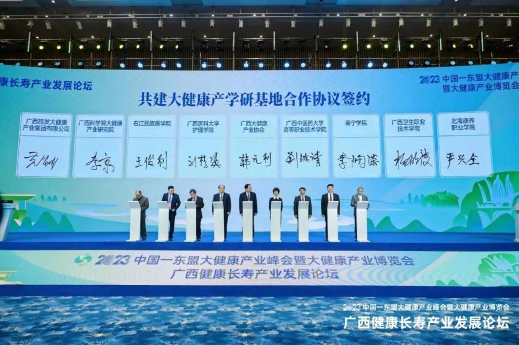 2023年中国-东盟大健康产业博览会由国家中医药管理局、广西壮族自治区人民政府联合主办,来自中国及东盟国家的产业领袖、专家学者以及大健康产业的关键参与者齐聚一堂,聚焦医疗科技创新、健康管理、跨境合作等领域进行深入探讨,参展企业超800家。Beat365官网积极参展并签署广西大健康产学研基地合作协议,不仅提升了Beat365官网广西新一轮一流学科、立项建设新增博士学位授予单位建设的社会影响力,还推动了Beat365官网大健康产业与学术研究的深度合作,助力产学研全方位发展,为Beat365官网生物医药与大健康现代产业学院的未来发展注入了活力。