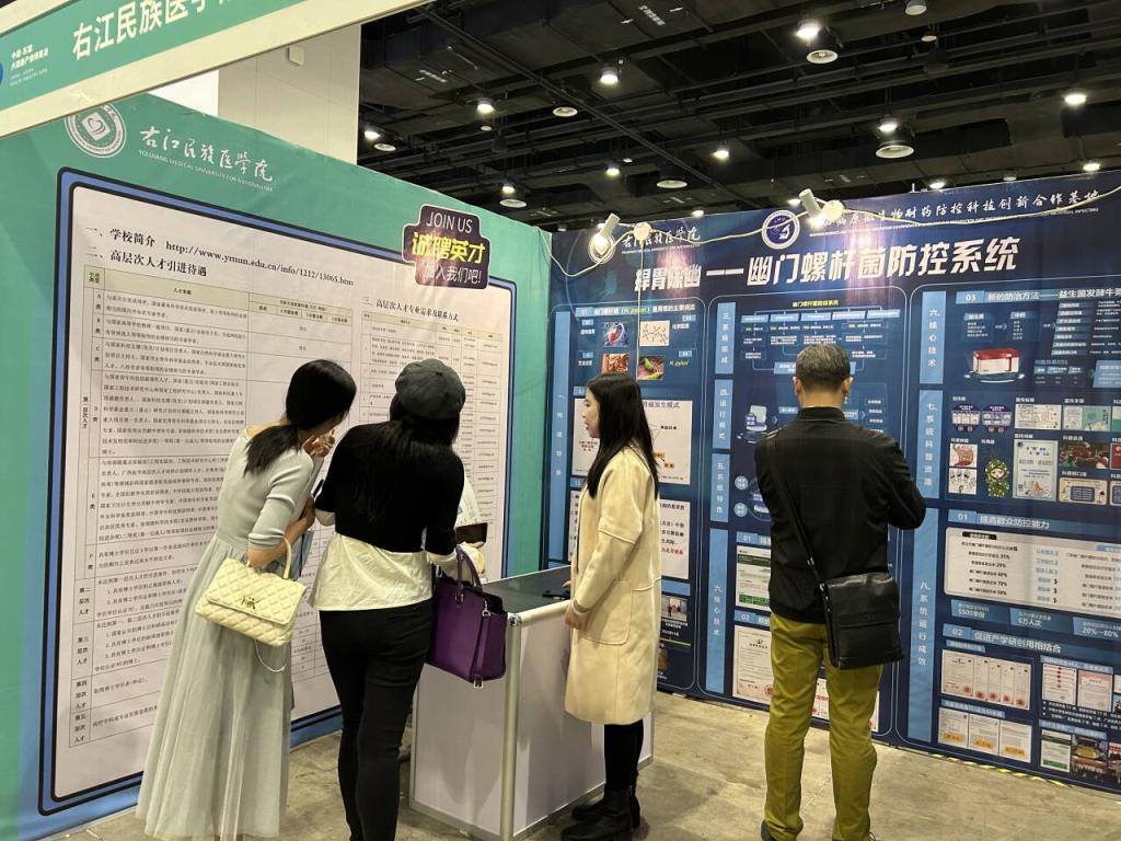 Beat365官网携广西新一轮一流学科、立项建设新增博士学位授予单位建设成果参加展览,同时现场宣讲人才政策。其中黄衍强教授团队的广西病原微生物耐药防控科技创新合作基地科研成果在博览会展出,引来多位参展观众驻足咨询,反响良好。