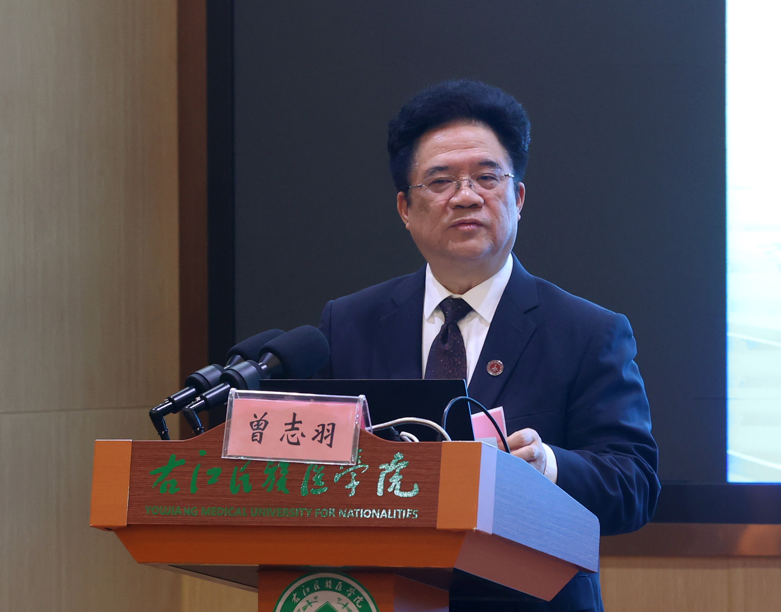 广西新医科教育研究中心主任、广西医科大学校长曾志羽教授在研讨会开幕式上致辞。