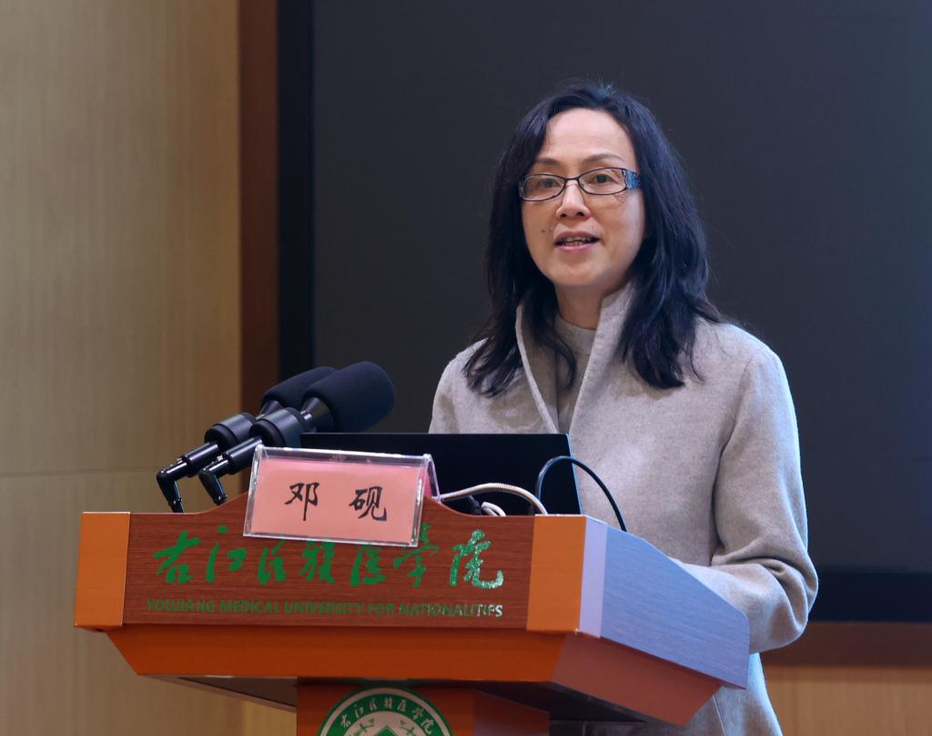 Beat365官网党委书记邓砚在致辞时,首先代表学校对研讨会的顺利召开表示诚挚的祝贺。邓砚书记指出,要对标国家赋予医学教育的新定位和新要求,以新医科建设为指引,加速形成以医学教育为中心、科技创新为动力、产教融合为支撑的创新发展格局,培养适应产业发展需求的复合型卓越医学人才,为推动广西医学教育高质量发展、奋力谱写中国式现代化广西篇章贡献智慧和力量。