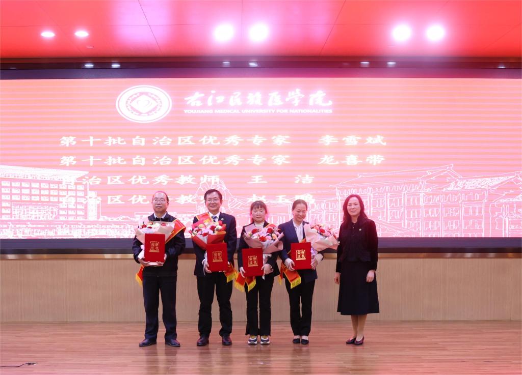 第九届全区高校青年教师教学竞赛:医科组二等奖李传玉团队、理科组二等奖韦花媚团队。