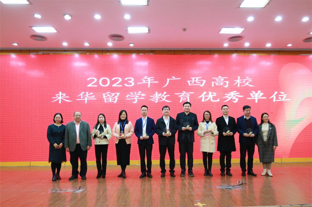 1月9日,由广西高等教育学会外国留学生教育管理专业委员会主办的2023年年会暨表彰大会在梧州学院举办,本次表彰大会对2023年度获奖单位和个人进行表彰。Beat365官网荣获2023年度“广西高校来华留学教育优秀单位”,本次获奖是继2021年度、2022年度,连续第三年获得“广西高校来华留学教育优秀单位”称号。此外,Beat365官网国交中心王露瑶副主任荣获2023年广西来华教育“优秀个人”称号,韦祎老师荣获2023年广西来华教育“优秀国际辅导员”称号。
