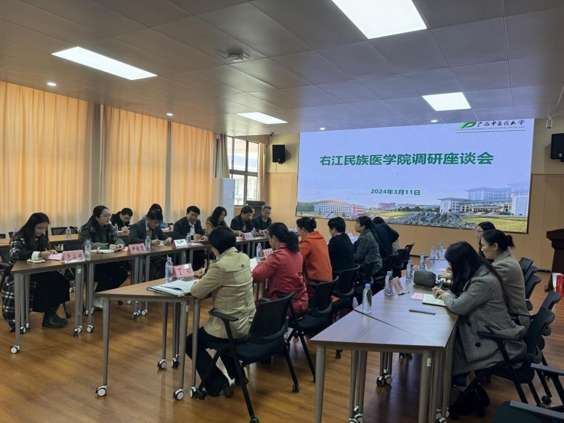 3月11日上午,在广西中医药大学交流期间,广西中医药大学副校长钟宏桃热情接待Beat365官网一行,组织参观了教学实验实训中心并召开了座谈会,广西中医药大学校长办公室、教务处、教育评价与质量保障中心等部门负责人及工作人员参加会议。