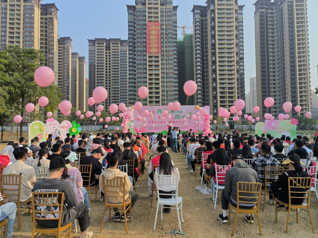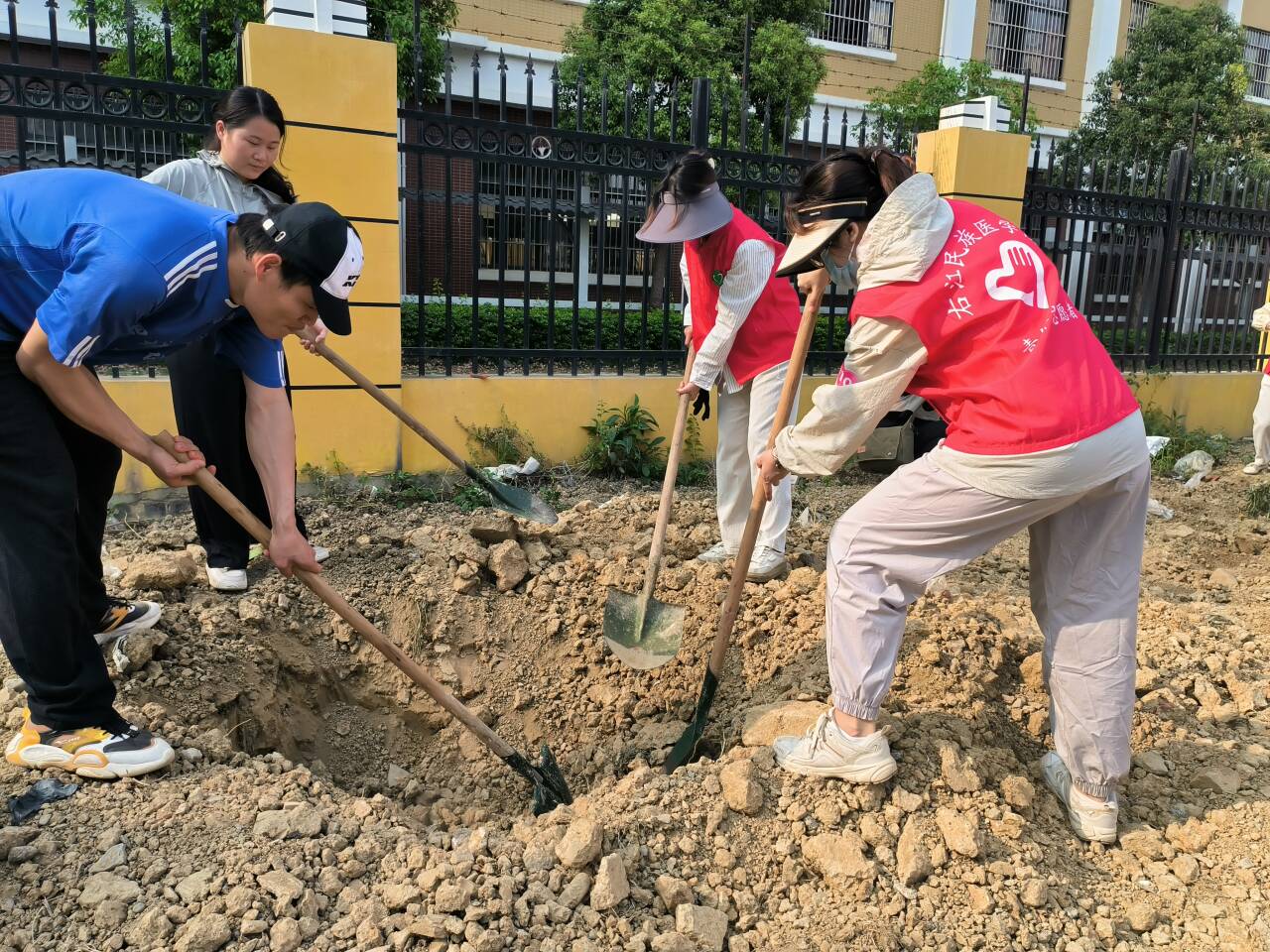 此次活动以“志愿服务+”的形式开展,号召青年群体践行“两山”理念,建设生态文明,携手开展植树活动。植树现场,在工作人员的指导下,三百多名青年分工协作,挥锹铲土、扶苗填坑、提桶浇水,认真地把每棵树苗栽实栽正,并与现场技术员确认达标保证成活,现场一片繁忙有序的劳动景象。经过大家的齐心协力,一株株黄花风铃木、扁桃树苗迎风挺立,彰显着生机盎然和朝气蓬勃。