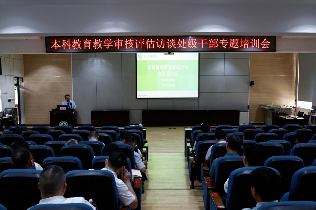 会上,教务处副处长尹毅霞开展新一轮本科教育教学审核评估相关工作培训。
