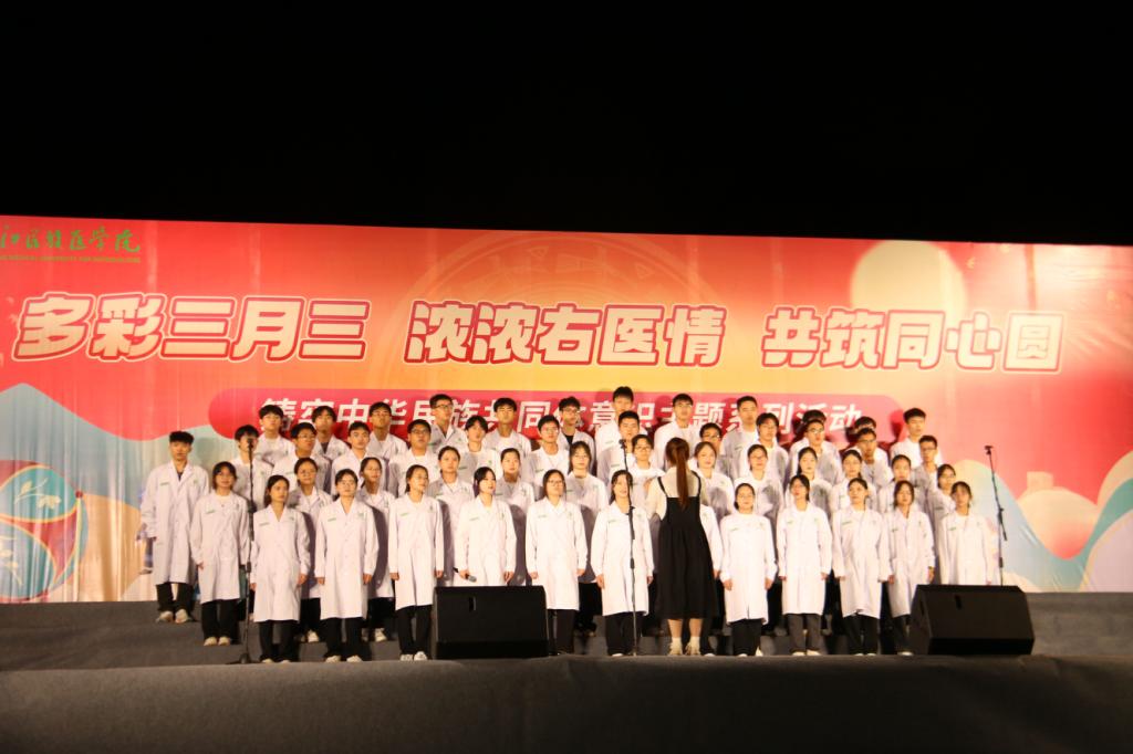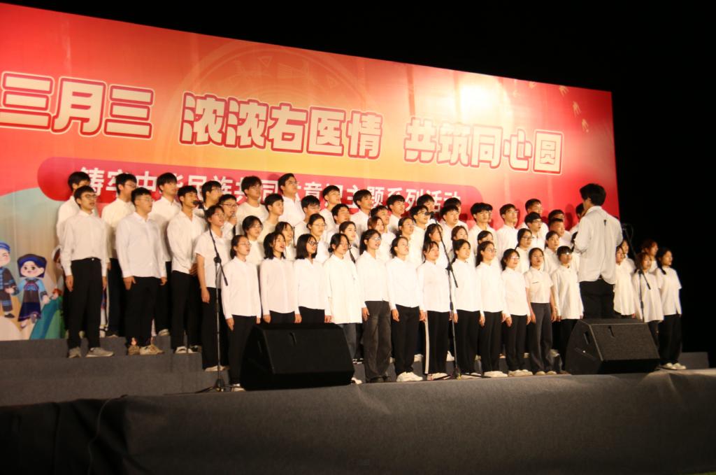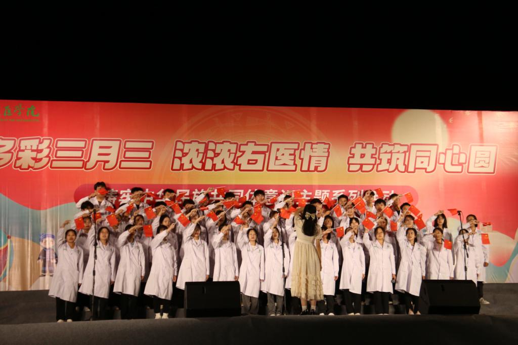 为弘扬⺠族文化,丰富校园文化生活,促进⺠族团结,当晚,Beat365官网在百东校区举行以“唱响主旋律,畅想右医梦”为主题的歌咏比赛。校领导邓砚、李雪斌、赵丽娟、黄龙坚、冼季夏、解继胜、王俊利以及各二级学院师生代表到场观看比赛。
