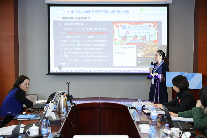 生机计划自2023年10月底启动以来,共收到来自全国29个省份的300个项目申请,并经过资质审核、初轮评选、尽职调查、终轮评选等四个环节后,于2024年3月27日在北京进行终审答辩。其中,右医附院护理部主任陆柳雪教授团队主持的《边陲少数民族山区基于VR技术‘生机康传'健康科普平台研发及三级传播体系的构建与实践》项目从全国300个申请项目中脱颖而出,成为有资质参与终评的43个项目之一。