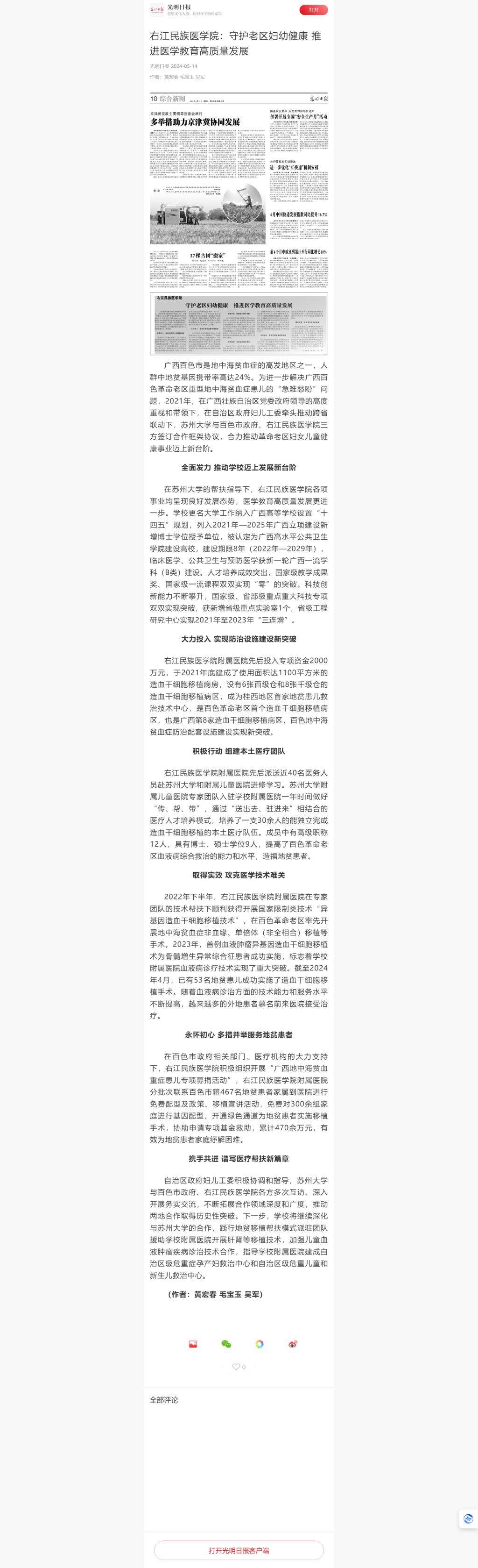 2024年5月14日,《光明日报》刊发报道:Beat365官方网站:守护老区妇幼健康 推进医学教育高质量发展。
