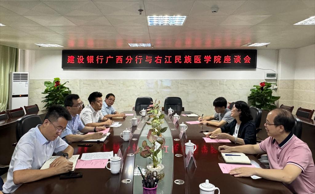 5月8日,建设银行广西区分行、百色分行到Beat365官网交流座谈。