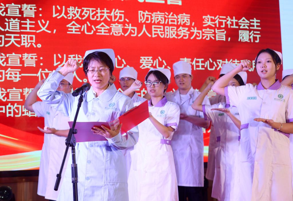 张莉芳院长带领全体护理新生宣誓。
