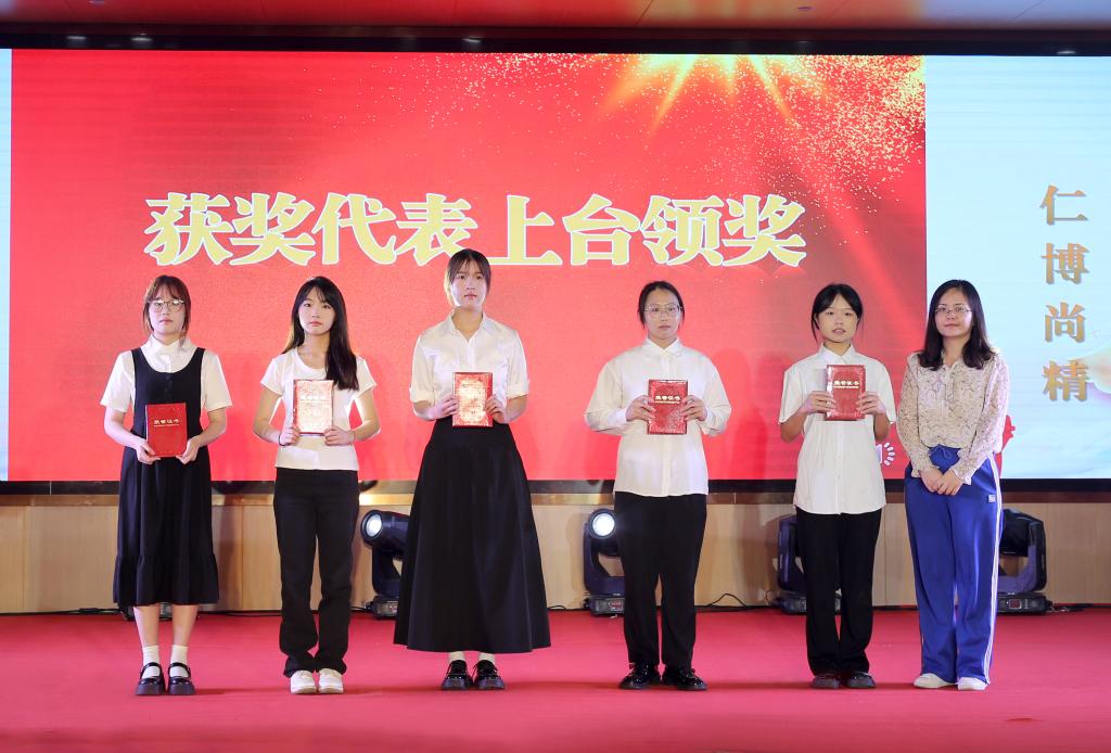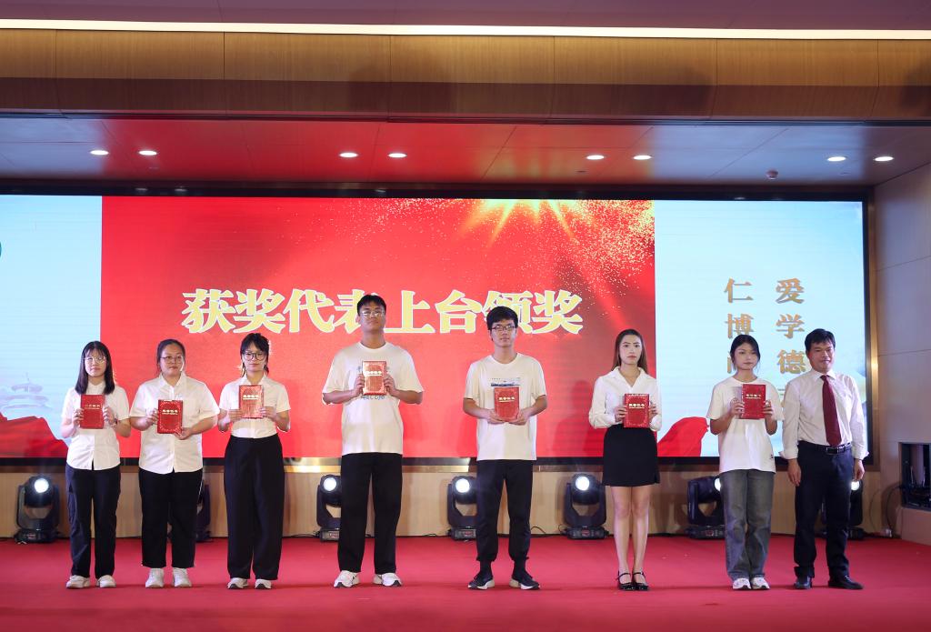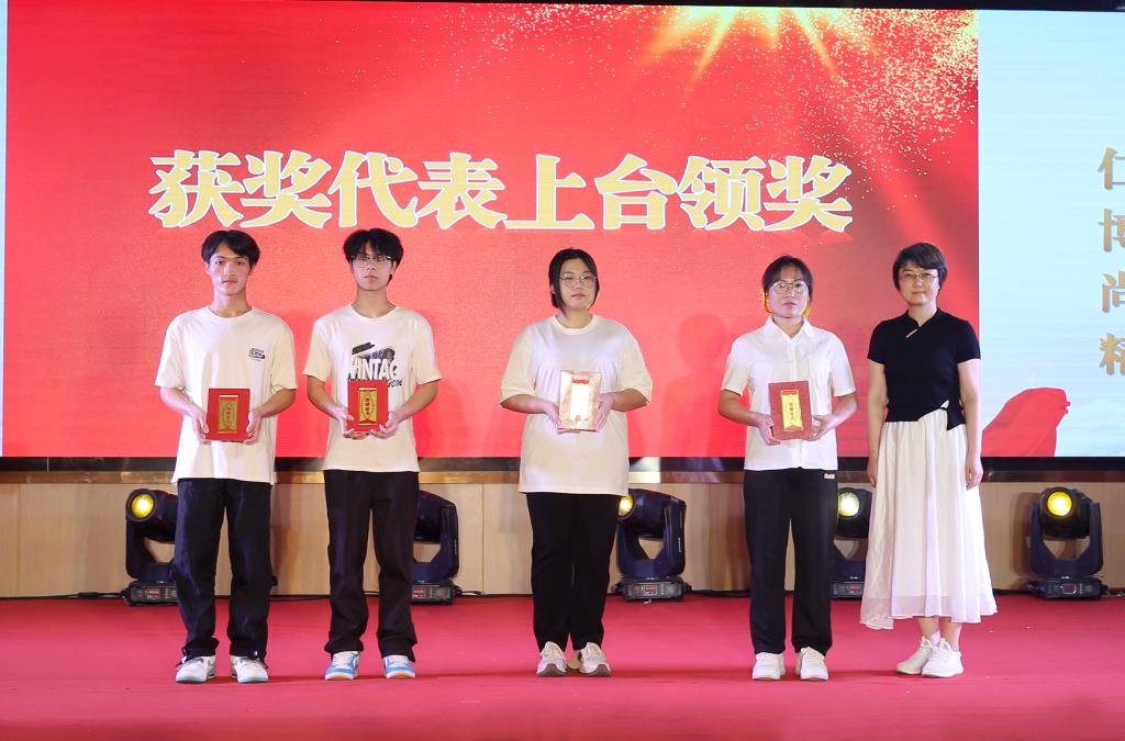 与会领导老师给教师、学生代表送花、颁奖祝贺。