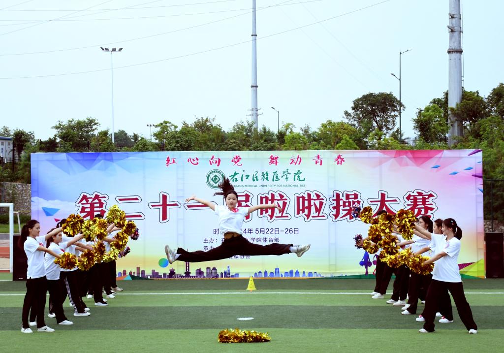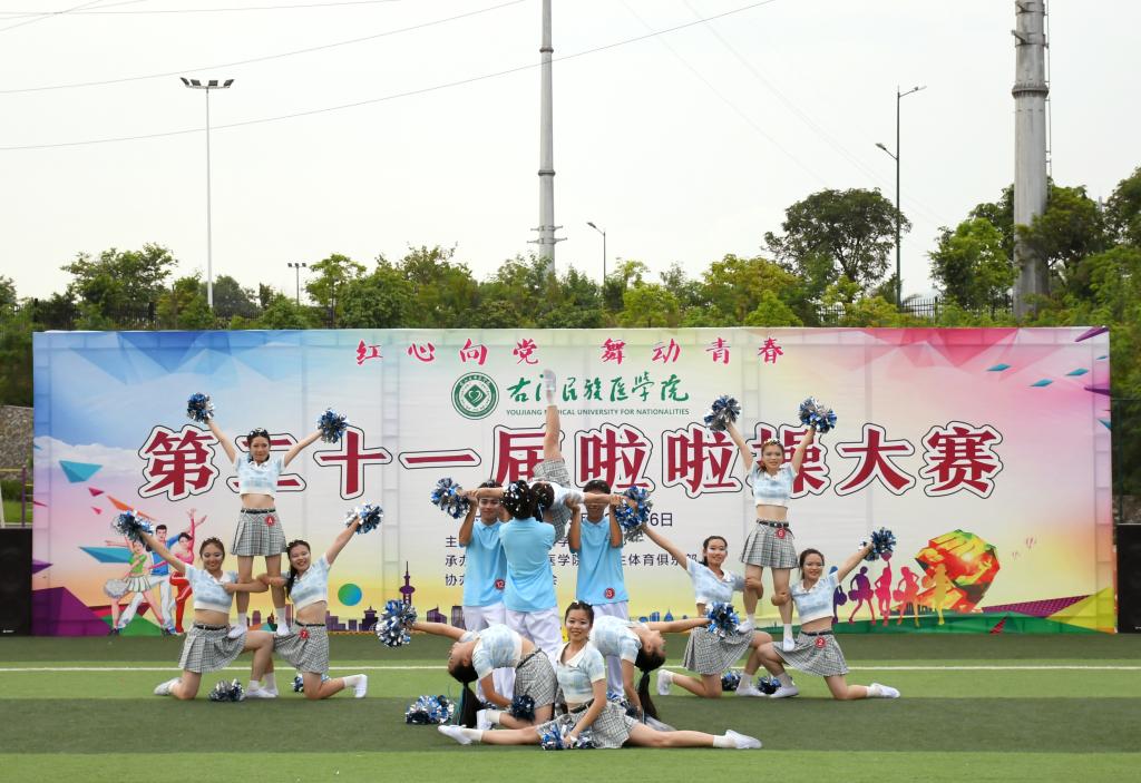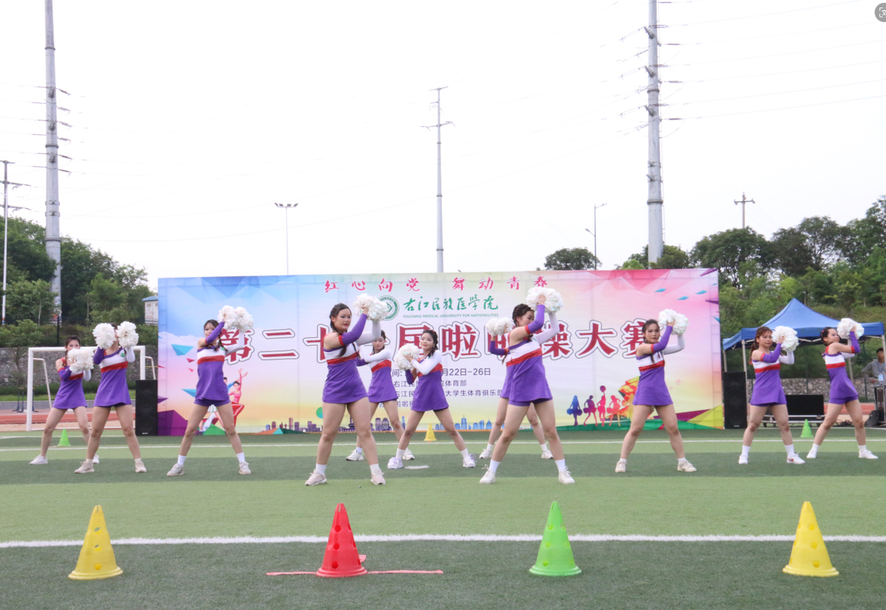 5月25日下午,Beat365官方网站第二十一届啦啦操比赛决赛在百东校区田径场拉开帷幕,此次决赛共有来自各二级学院的十八支队伍入围。