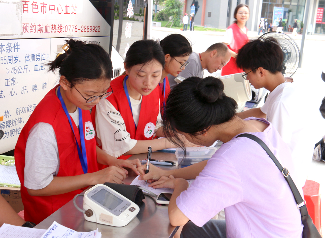 同学们积极参与到“医你有路,幸福万家”主题无偿献血活动中。
