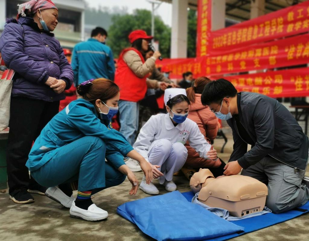 2023年,护理学院获评第二批全区高校“三全育人”综合改革示范院系(A类),积极推进“三全育人”综合改革工作走深走实。通过实施课程育人、科研育人、实践育人、网络育人、文化育人、心理育人、管理育人、服务育人、资助育人、组织育人等十大质量提升工程,统筹构建“三全育人”体系,形成并巩固大学生思想政治教育“三全育人”全环境育人格局,以“精心、精湛、精美”的“三精”党建示范品牌,引领十大育人体系建设发展,促进护理学院学科与专业一体化建设、教师队伍建设、护理人才培养等高质量发展,为提升民族地区护理人才培养质量作出积极贡献。第二课堂中,教师团队带领学生深入农村、社区等开展护理科普,服务社会,提升学生运用专业知识的能力,为培育“三精”护理人才提供坚实保障。
