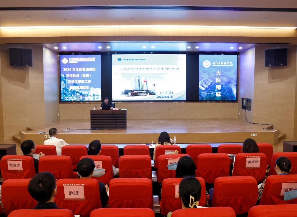 自治区教育厅高校毕业生就业创业指导中心黄瑞捷作《高校学生处分(处理)和申诉工作案例分析》专题讲座。