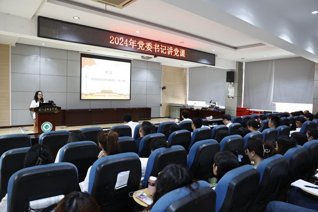 为深入学习宣传贯彻习近平新时代中国特色社会主义思想和党的二十大精神,推动党纪学习教育走深走实,引导毕业生党员坚定理想信念,牢记党员身份,勇于担当作为,6月17日下午,学校党委书记邓砚为2024届毕业生党员讲授专题党课。学校党委副书记赵丽娟主持党课,学生工作部(处)全体人员、二级学院辅导员代表以及2024届毕业生党员代表到场聆听。