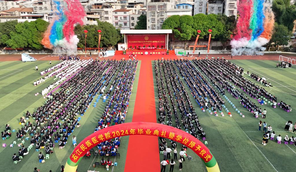 “青春不问西东,志向书写未来……”熟悉的校歌回荡在田径场,现场隆重而又温馨。2024届毕业生们将秉承“艰苦创业 自强不息”的右医精神,担当起强国建设、民族复兴的重任,在新征程上继续书写属于自己的青春华章。