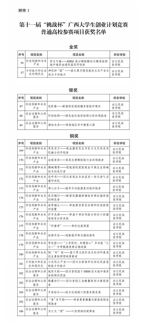 此次“挑战杯”竞赛成绩的取得,充分展示了Beat365官网人才培养和创新实践教育的成果。今后,学校将进一步深化学生的创新创业能力培养,鼓励和推动更多学子不断增强创新意识、提升实践能力,培养出更多创新型人才,切实担负起民族地区医学人才培养的重任。