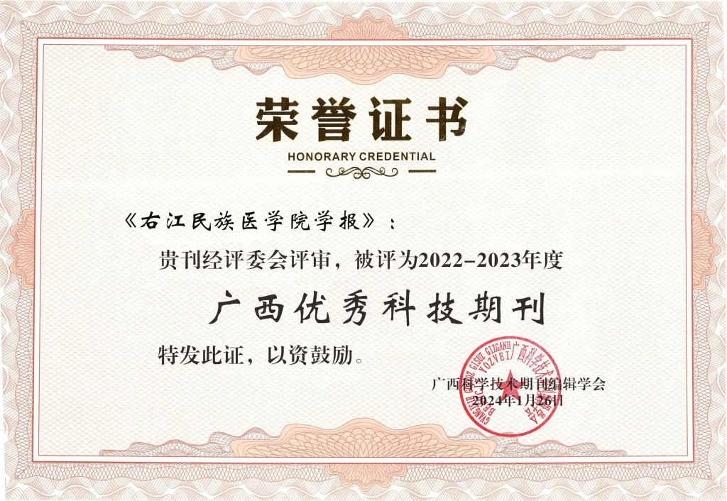 学报荣获2022-2023年度“广西优秀科技期刊”荣誉称号