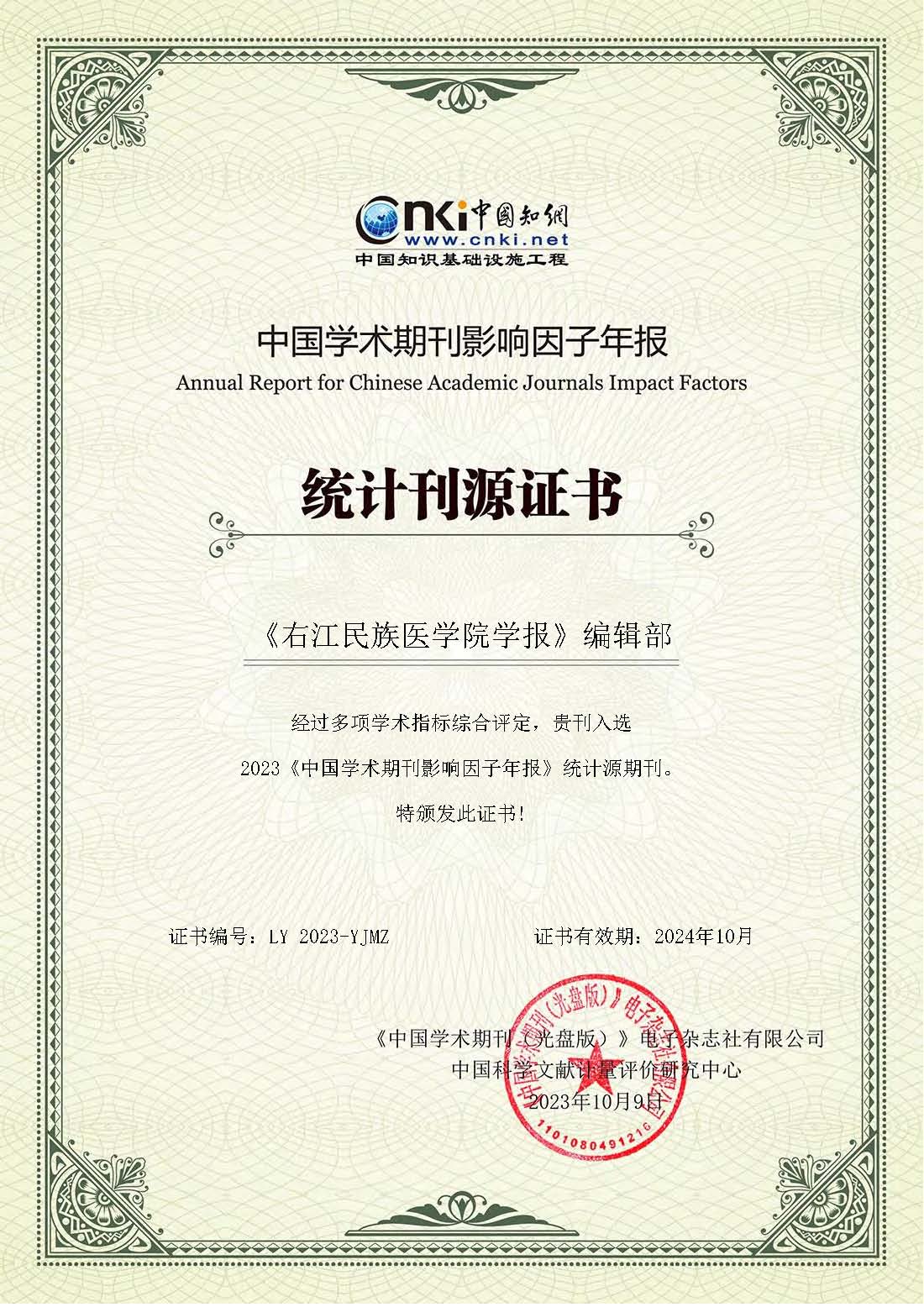 近年来,学报稿件来源和优质稿件进一步增多,学报的办刊质量和学术影响力进一步提高,刊登的具有国家自然基金课题、省级自然基金课题、其它项目课题论文数量均有所提升。2023年度学报编辑部基金课题论文比率达84.75%,其中省级及以上基金项目论文达33.89%;论文被引频次比2022年提高11.2%。2023年学报编辑部取得了显著的成绩,学报复合影响因子为0.709,综合影响因子为0.589。并成功入选2023年《中国学术期刊影响因子年报》统计源期刊。《Beat365官方网站学报》荣获2022-2023年度“广西高校精品学报”和“广西优秀科技期刊”荣誉称号。