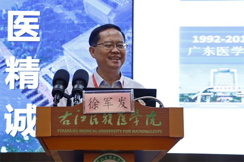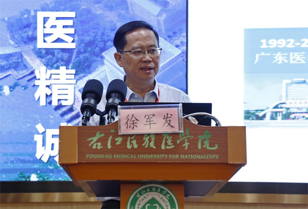 广东医科大学检验医学研究所所长徐军发教授作了题为《现代产业学院的建设与思考——以广东省示范性体外诊断产业学院建设为例》的报告。
