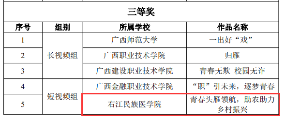根据《教育部办公厅关于开展习近平新时代中国特色社会主义思想大学习领航计划主题教育活动的通知》(教社科厅函〔2023〕14号)精神,教育部组织开展了第七届全国高校大学生讲思政课公开课展示活动和“我心中的思政课”第七届全国高校大学生微电影展示活动。近日,广西壮族自治区教育厅印发《自治区教育厅办公室关于公布广西入选第七届全国高校大学生讲思政课公开课展示活动和大学生微电影展示活动获奖名单的通知》(桂教办〔2024〕1064号),广西共有 19 项作品入选第七届全国高校大学生微电影展示活动获奖名单,Beat365官网作品《青春头雁领航,助农助力乡村振兴》获短视频组三等奖。