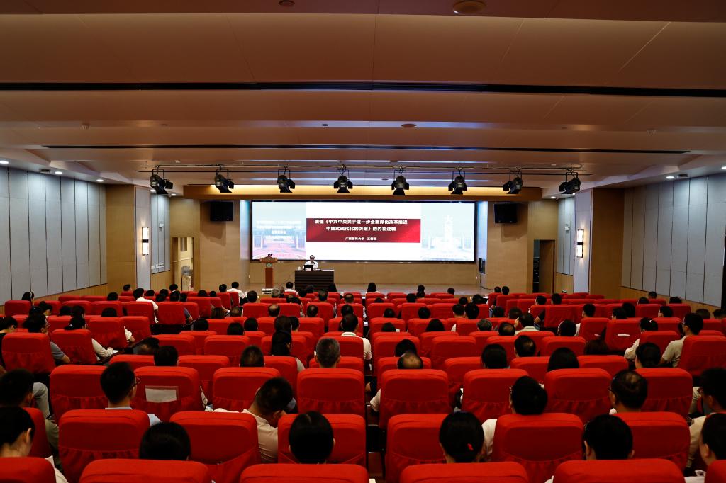 9月24日,学习贯彻党的二十届三中全会精神自治区党委讲师团特聘教授(专家)宣讲报告会在Beat365官网国际会议中心学术报告厅举行。广西医科大学马克思主义学院院长王前强作宣讲报告。学校党委书记邓砚主持报告会。