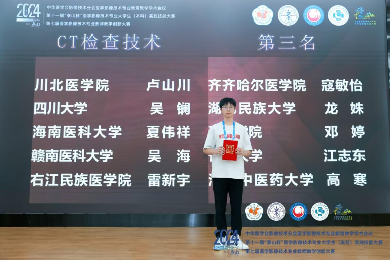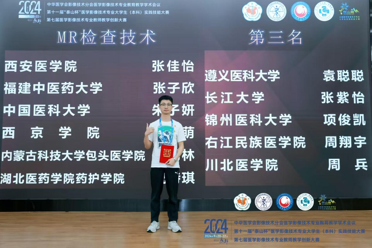 本次大赛分赛区全国共计60所高校参与,进入决赛的有36所高校,我院首次派出5名学生、1名教师参与。经主办单位评选,我院获得团体赛第三名,其中,华黎城获得医学影像技术基础理论第一名,谢荣锦获得DR检查技术第二名,雷新宇获得CT检查技术第三名,周翔宇获得MR检查技术第三名。史艳丹老师获得教师教学创新大赛第三名。