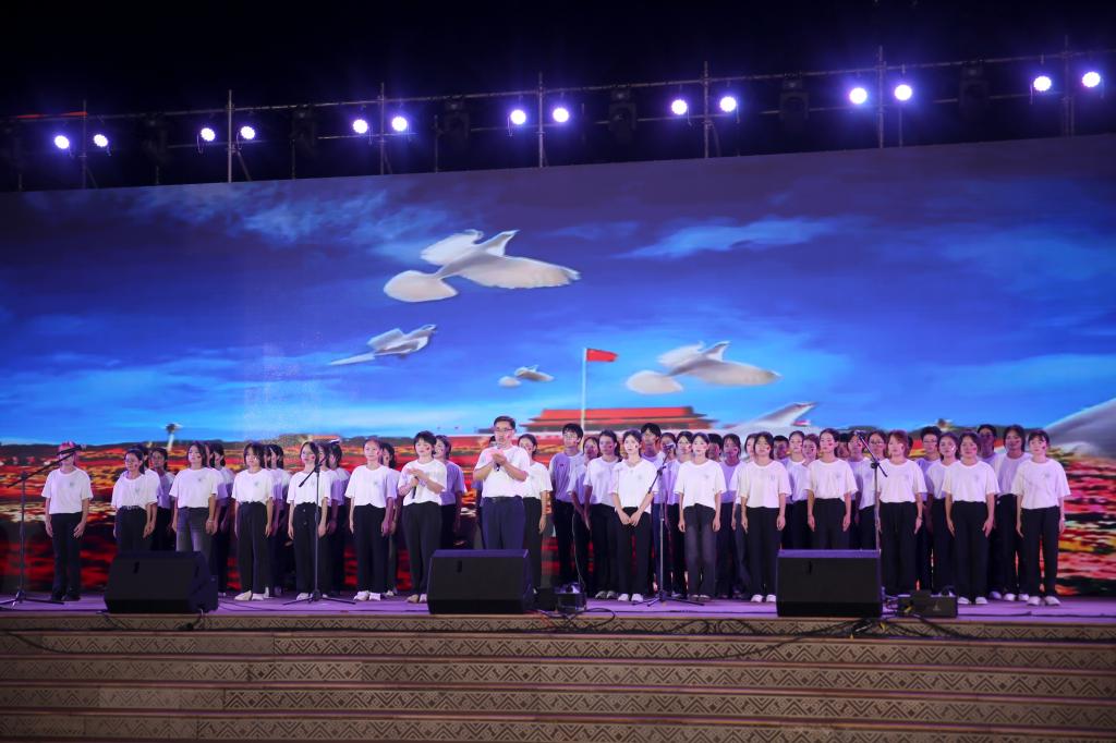 晚会在全体师生合唱《我和我的祖国》的歌声中落下帷幕。大家挥舞着手中的国旗,歌声响彻整个广场,现场成为了一片欢乐的海洋。