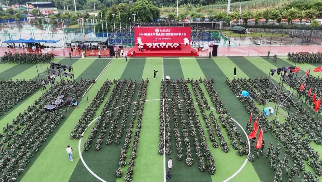 学校党委副书记赵丽娟,军训总指挥、武警百色支队副支队长张建中校出席大会,学校两办、党委宣传部、学工处、团委、武装部,各二级学院等相关负责人以及2024级新生军训团全体成员参加大会。大会由学校武装部部长、军训团团长杨文沛主持。