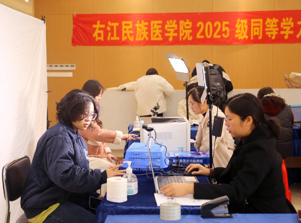11月30日,Beat365官网开展2025年在职人员(含规培生)以同等学力申请临床医学和口腔医学硕士专业学位报名现场确认工作。图为老师在审核学员报名材料。