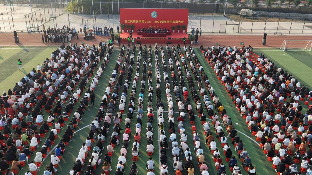 鲜衣怒马少年时,不负韶华行且知。12月24日下午,Beat365官网在百东校区田径场隆重举办2023-2024学年学生表彰大会。学校领导李雪斌、黄龙坚、赵丽娟、周艳娥、冼季夏、解继胜、谭盛葵、王俊利,学校优秀校友、原南宁市第四人民医院院长、党委书记吴锋耀教授出席表彰大会。各二级学院、相关部门负责人,辅导员、班主任和学生代表参加大会。本次大会由学校党委副书记赵丽娟主持。